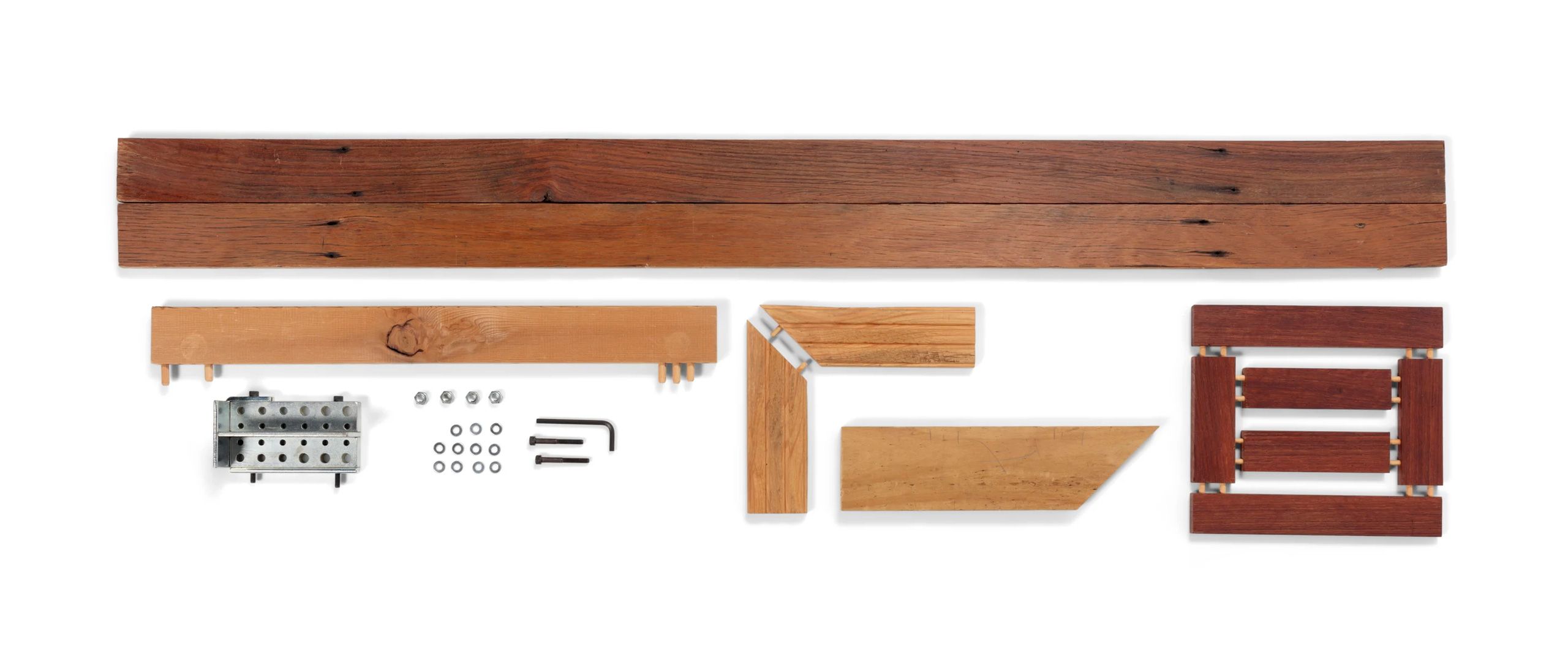 TF: The locking plate system was designed so the dowel runs consistently all the way through, and the details act to stabilise the timber so the natural movement is negated with cross beams that support and hold the piece rigid, then the piece is bolted together in two parts.